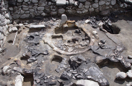 V hlinité podlaze každého z těchto mini-chrámů, skládajícího se z jedné místnosti, byly prohlubně naplněné popelem, a všude kolem byly keramické nádoby.